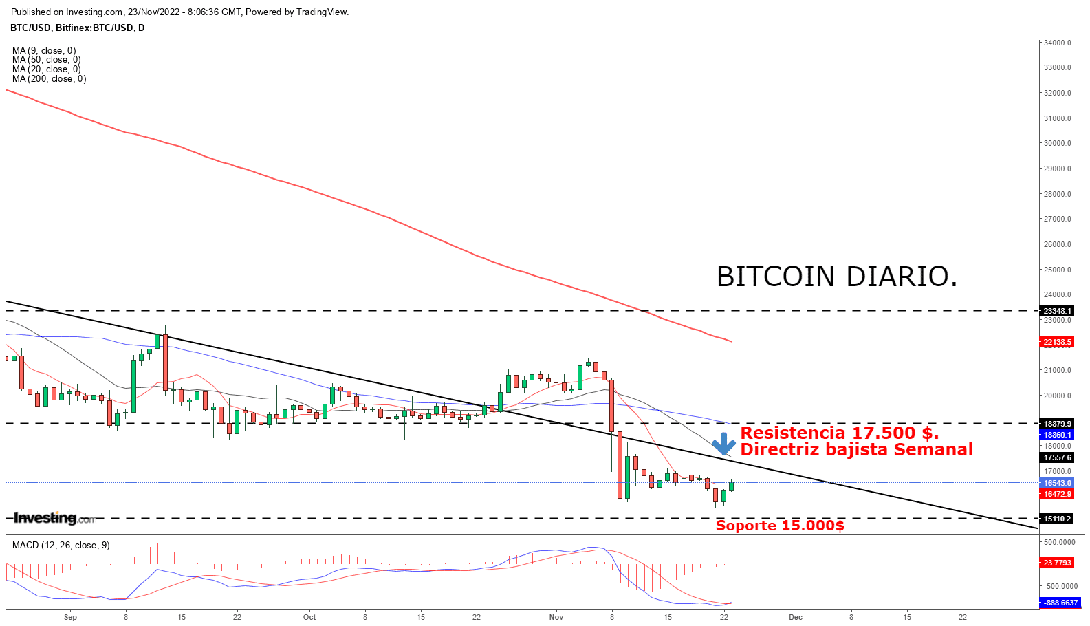 Btc y Ethereum respiran. Bitcoin recupera los 16.000 $ y se enfrenta a Resistencias importantes en 17.000 $ y 17.200 $. La tasa de hash o potencia de cálculo sigue a la baja, mientras se suceden noticias de cierres de actividad profesional minera de BTC por no poder hacer frente a los costes, ante el bajo precio de BTC.
