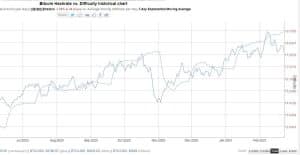 Tasa de hash y dificultad se des correlacionan.