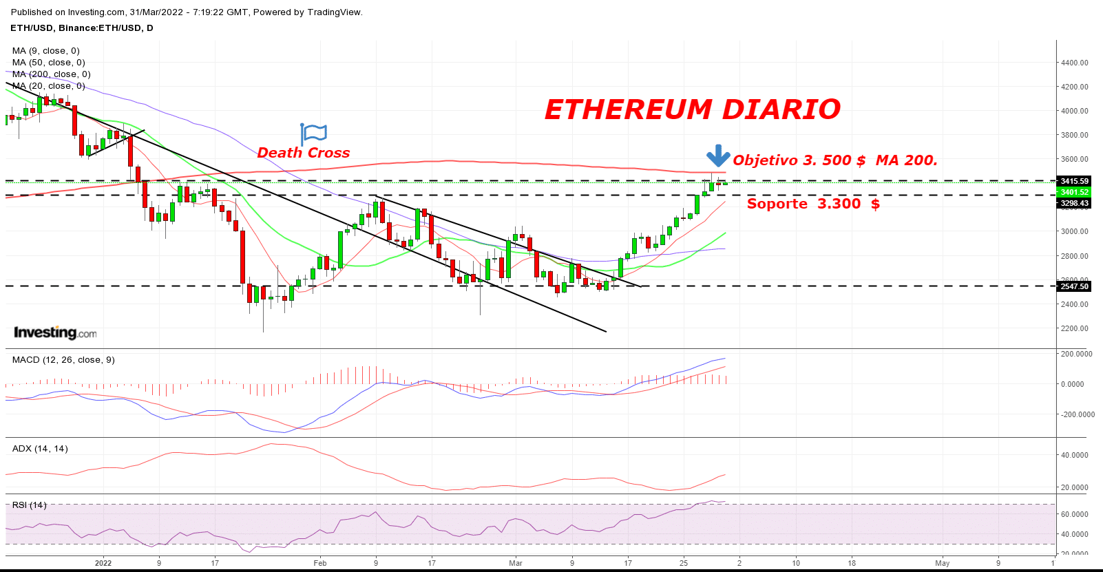 BTC / ETH siguen en tierra de nadie. La tendencia de ambos activos (según ADX) es todavía muy débil por lo que podrían verse afectados por sobrecompra. Tanto Bitcoin como Ethereum acumulan tres dojis mínimos consecutivos en el chart Diario. La tasa de hash cede a la baja y pierde casi – 11 %. Si no rebota pronto veremos caídas a soportes.