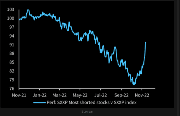 La ratio entre las acciones individuales con más posiciones bajistas y el SXXP – Stoxx – asciende rápidamente.
