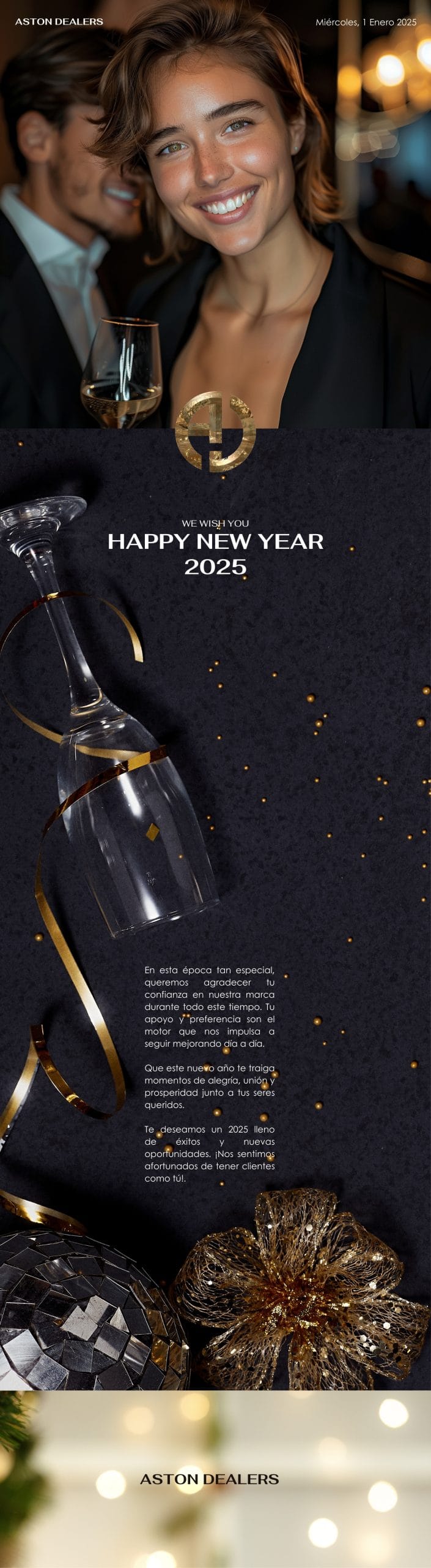 En cada paso que des este año, recuerda que no estás solo/a. Todos estamos recorriendo nuestro propio camino, pero juntos, compartimos la misma esperanza de un futuro mejor. Así que celebremos juntos el inicio de este emocionante viaje hacia un 2025 lleno de posibilidades infinitas. Te enviamos nuestros mejores deseos y toda la energía positiva para que este Año Nuevo sea el comienzo de algo extraordinario en tu vida. ¡Brinda por todo lo que has logrado y por todo lo que está por venir!
