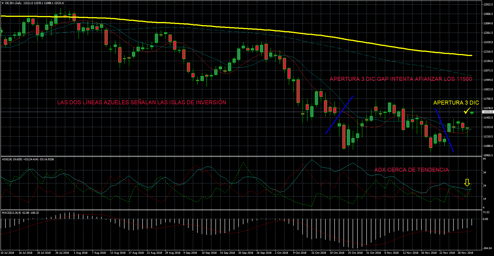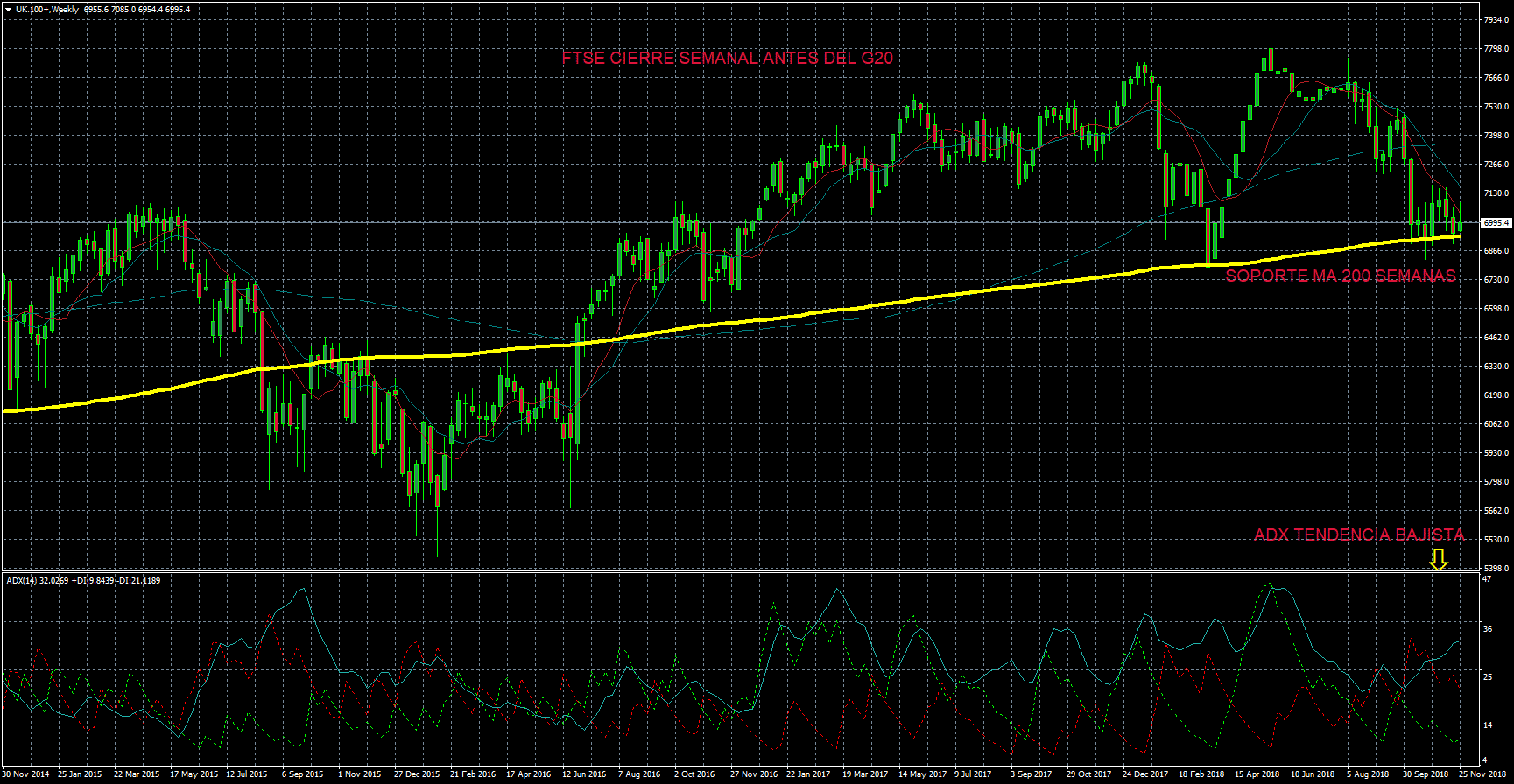 La falta de noticias en la cuestión del Brexit, la inseguridad en la llamada guerra comercial entre China Y EEUU y la incertidumbre sobre si van a seguir o no la subida de tipos por parte de la FED, protagonizan las sesiones de esta semana y las de la semana que viene. En general, lo recomendable es olvidarse por el momento del swing trading y mantener operaciones no más allá de horizontes temporales de una hora.