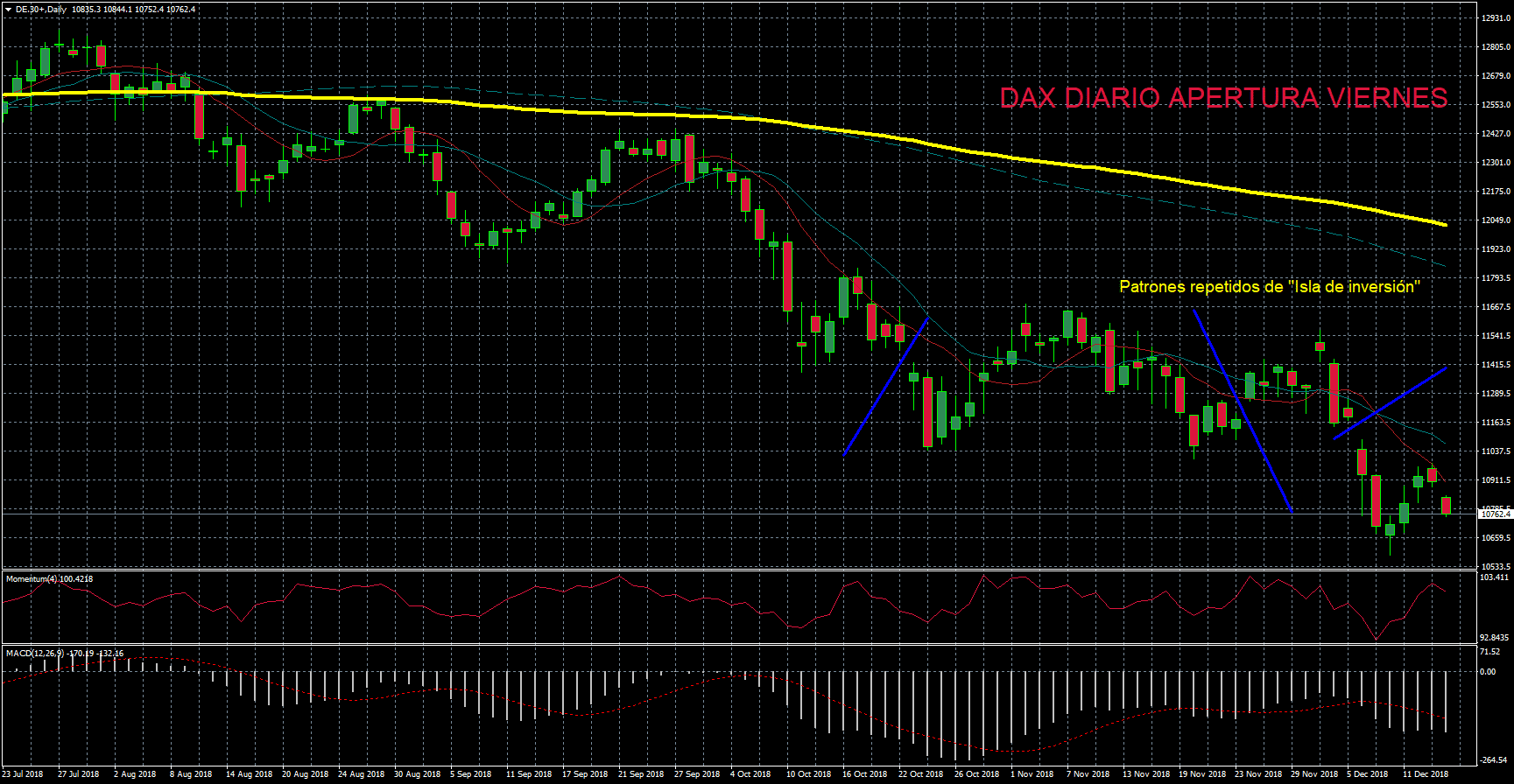 Chart DAX Diario. Patrón bajista de isla de inversión.