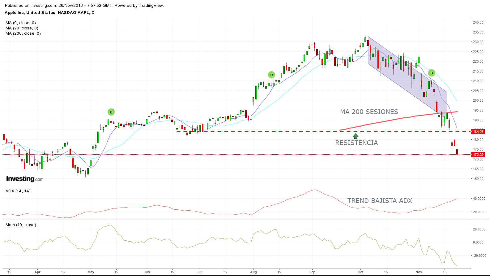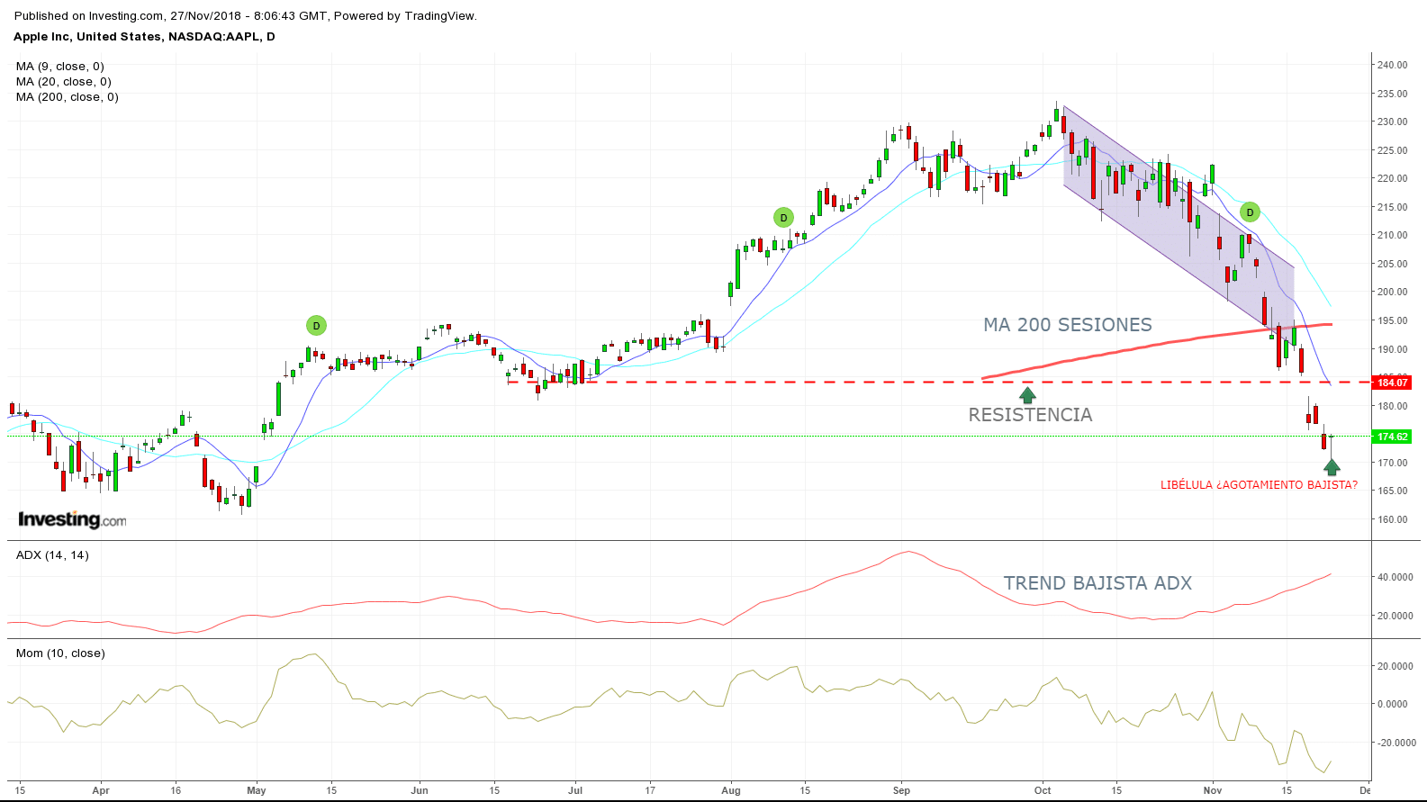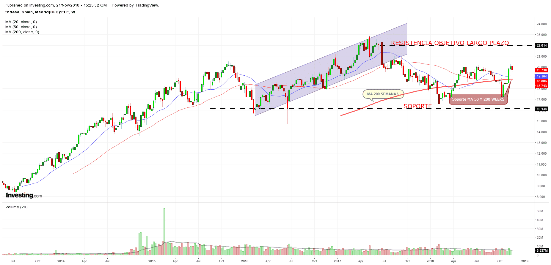 Como se puede apreciar en el gráfico superior, en octubre coincidió cierta relajación del dólar en su presión alcista. Esto combinado con la percepción de un acuerdo sobre BREXIT llevó al EURUSD a máximos de su rango en el medio plazo. A partir de noviembre – presión alcista del dólar y crisis del acuerdo sobre BREXIT – se activa la directriz bajista que pone en peligro el soporte MA 200 semanas del EURUSD.