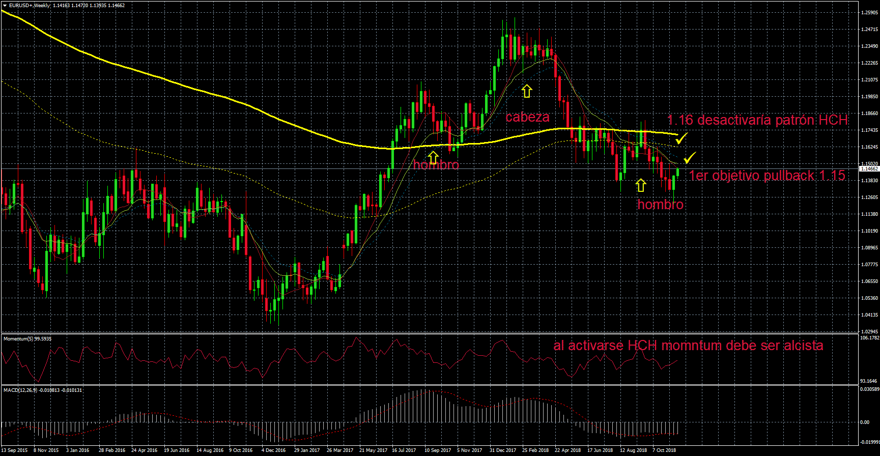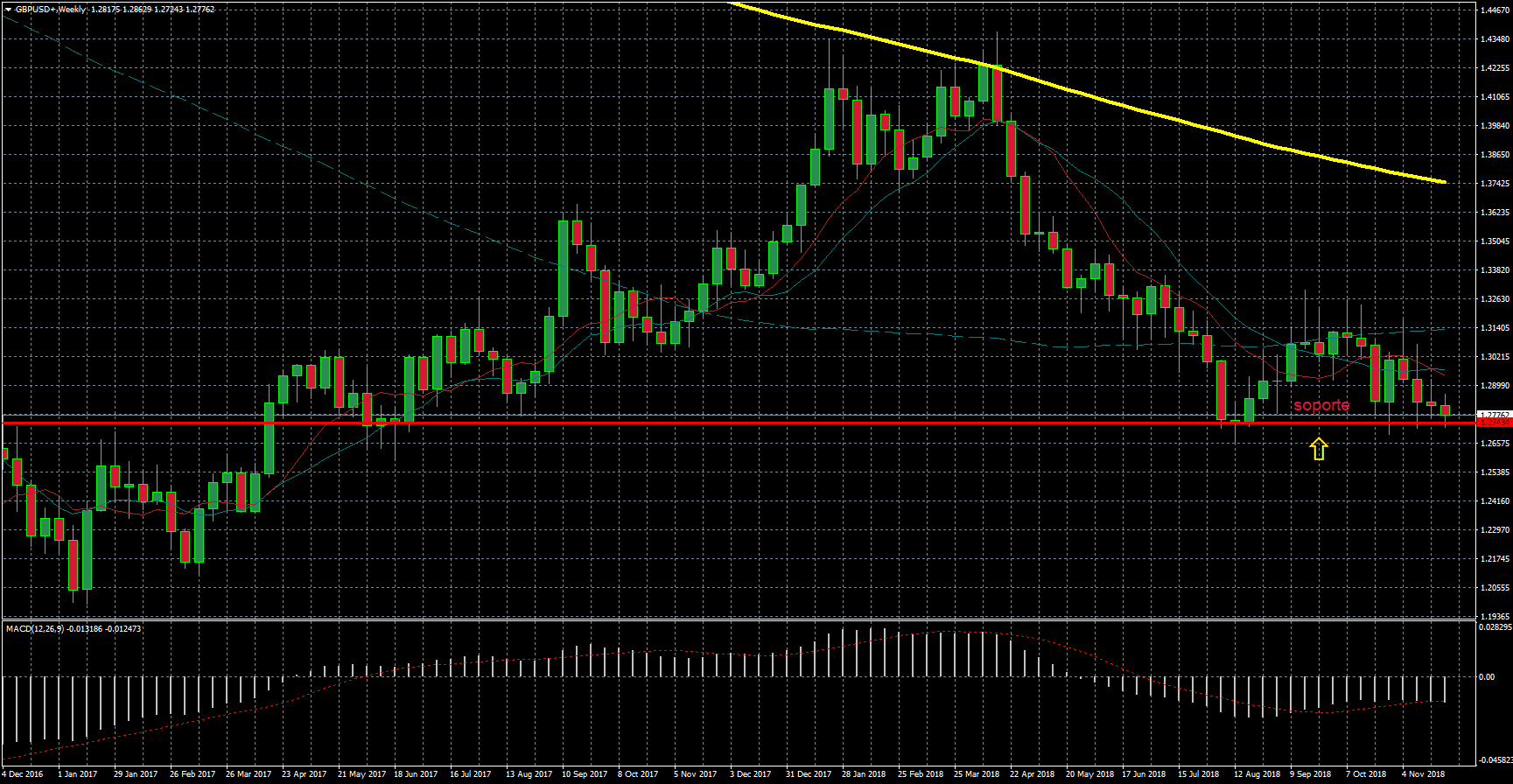 GBPUSD soporte semanal que debemos vigilar especialmente si en dos semanas la votación del Parlamento británico fuese contraria al plan de May y la UE. Si eta circunstancia se diera además con un sesgo alcista del dólar, la caída sería muy interesante para trades cortos en el par.