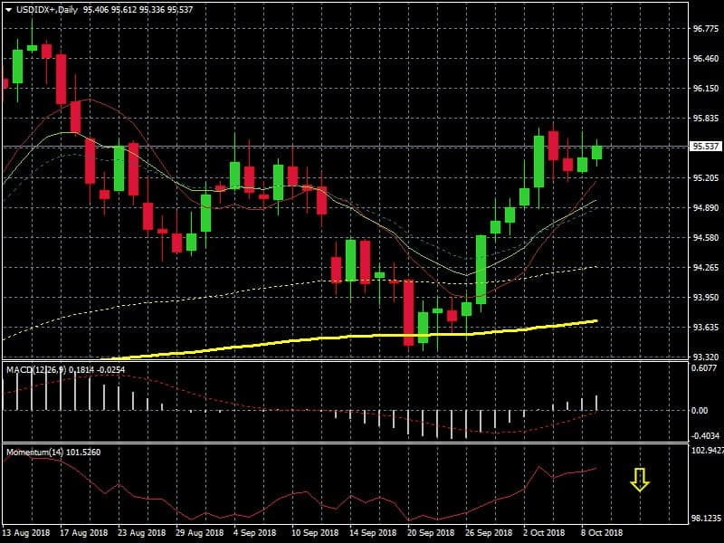 Chart diario Índice dólar. Envolvente bajista en una zona de soporte. En este caso tanto el patrón de velas japonesas como el contexto son muy prometedores.