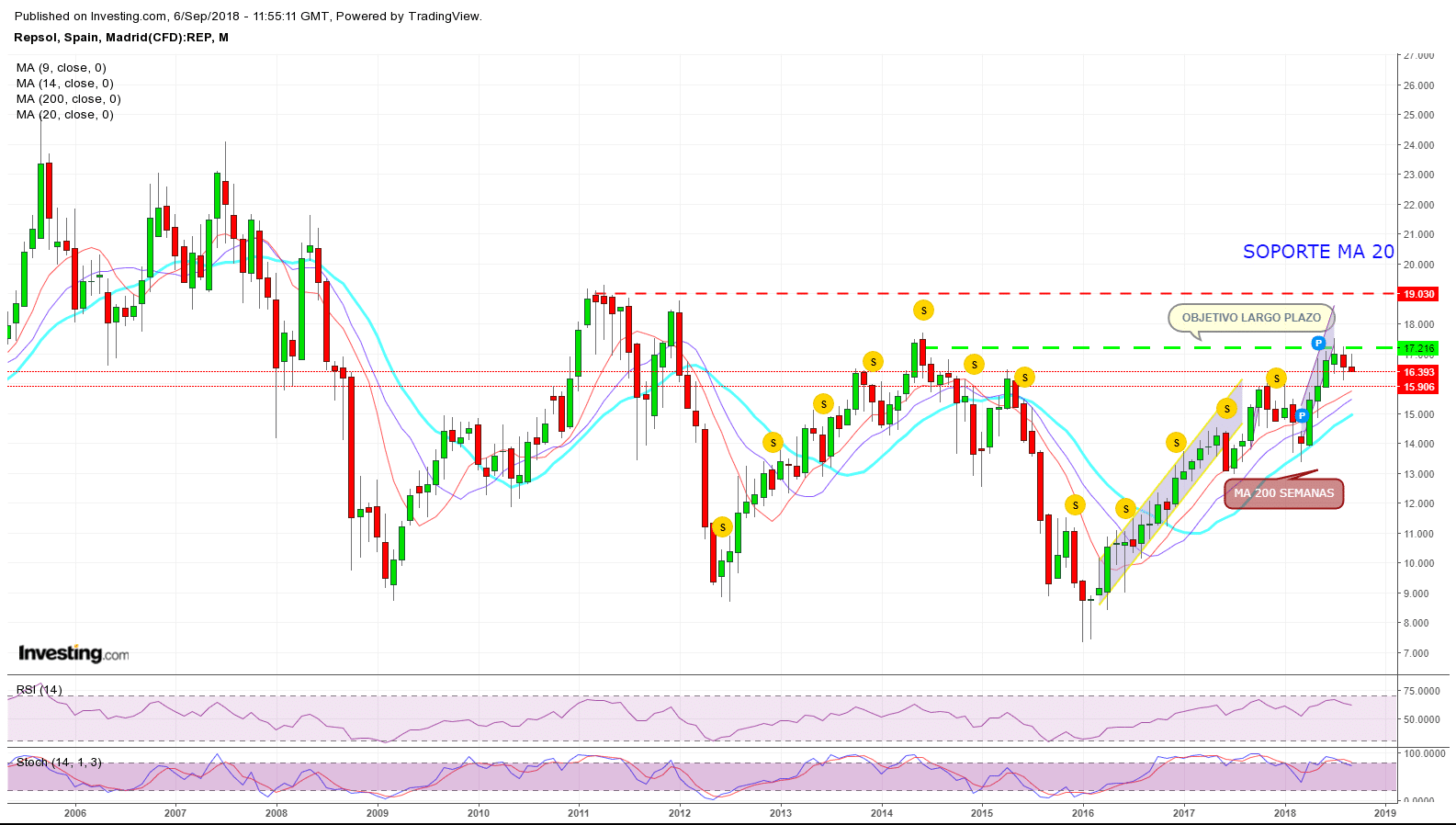 Gráfico semanal de Repsol.