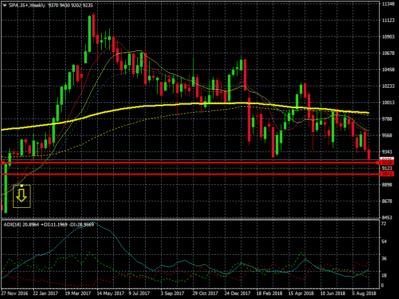 La guerra de aranceles, los malos datos macro de España y Alemania, la debilidad del euro – que perjudica de forma especial a la banca española – además de la crisis de los emergentes ( Turquía, Brasil y Argentina ) que afectan directamente a las entidades españolas internacionales ( SAN, BBVA ) ,han sido los principales responsables de la caída del Ibex ,de la pérdida de soportes y hoy (jueves) , la entrada “oficial” en tendencia bajista según nos marca el oscilador ADX.