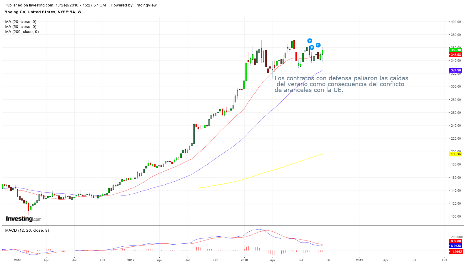 Lo descrito para Caterpillar CAT, puede aplicarse a la compañía aeronáutica norteamericana que también sufrió importantes pérdidas el pasado verano por motivo del conflicto comercial mencionado.