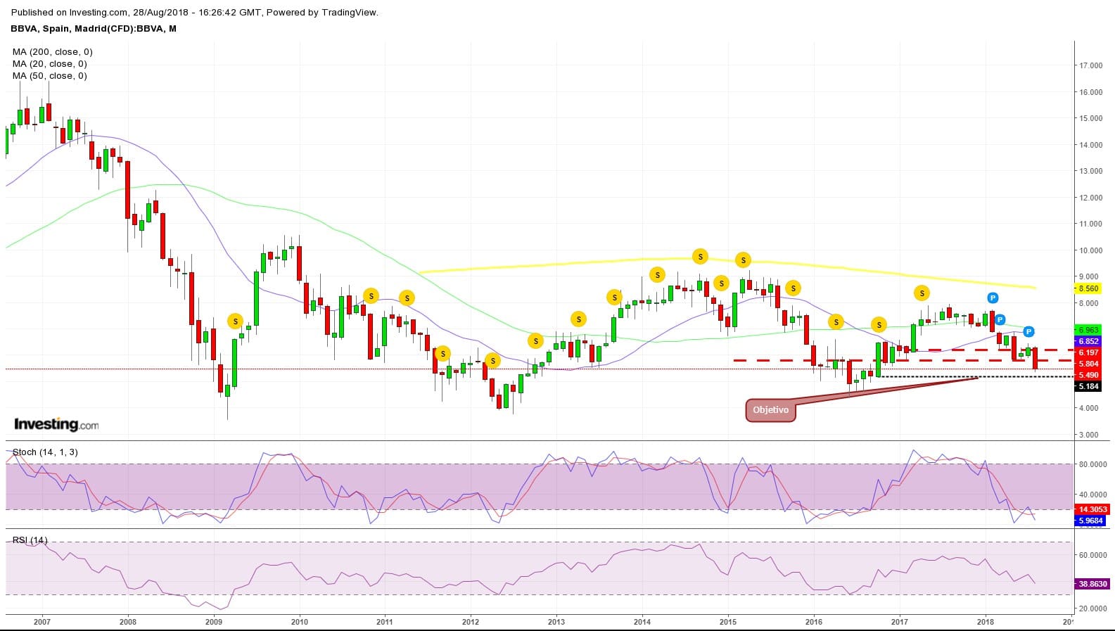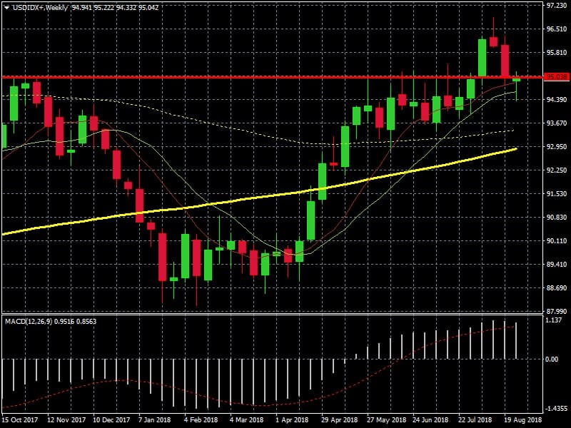 Chart semanal USDJPY. Observen que a partir de primavera 2018 el dólar se aprecia frente al JPY. Pesaron más los aranceles de Trump que el peso del JPY como valor refugio
