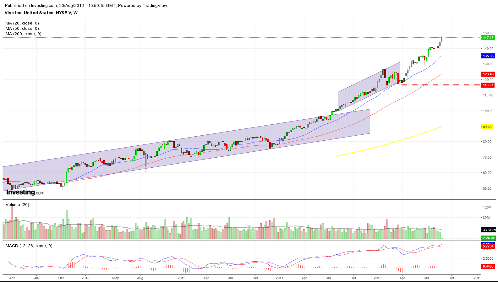 Observen en el gráfico como a partir de abril – cuando se declara la intención de Trump de establecer aranceles – el impulso alcista rompe la MA de 200 Semanas, llevando al índice dólar a máximos de 2015.