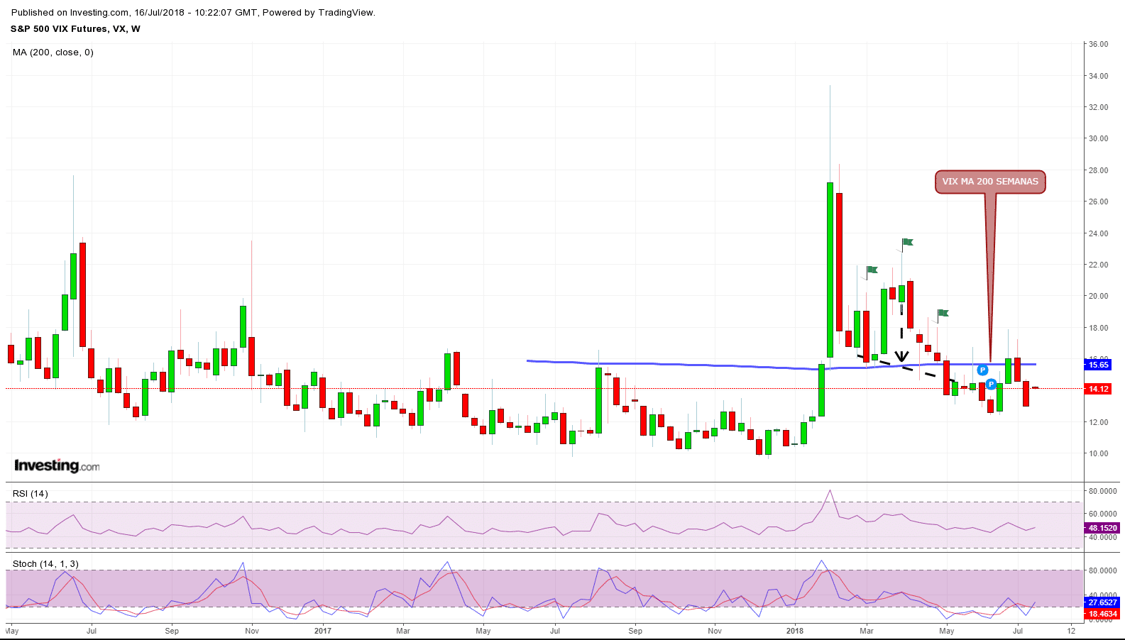 De todas formas la volatilidad no está respondiendo como se esperaba ; en niveles altos. Si no que, en el caso del VIX que es la referencia, tiene un sesgo bajista principal que podría devolver la volatilidad a niveles de 2017. Recordamos que en febrero del pasado año, llegamos a niveles bajistas récord de volatilidad desde el 2007 y la crisis.