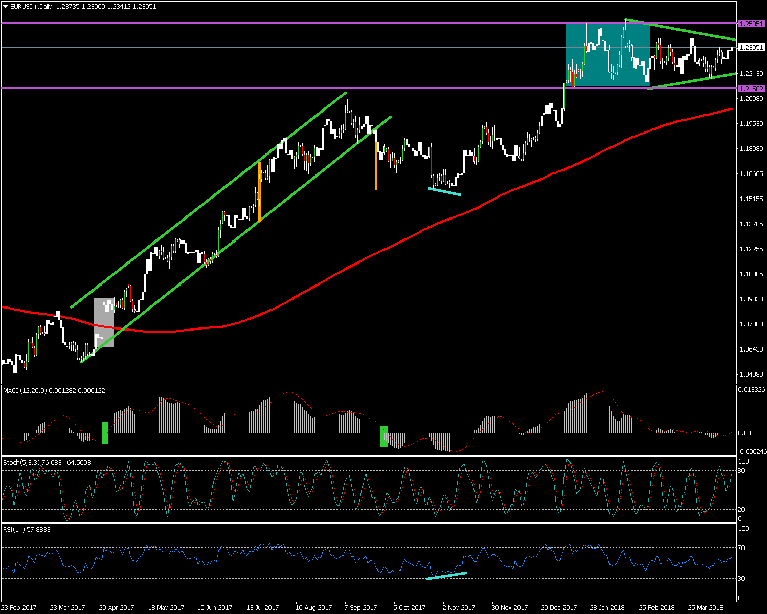 Posible soporte en los niveles Fibonacci de todo lo que lleva de rebote desde los mínimos de abril del 2018, dónde la cotización formó un pequeño doble suelo en la base del canal bajista.