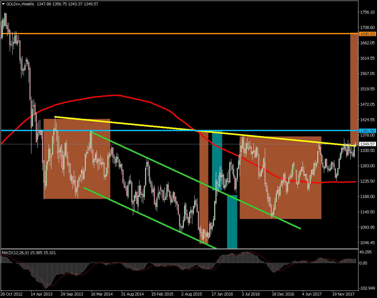 El pasado 24 de enero del 2018 el oro rompió la resistencia previa en 1.360 activando estructura alcista por Fibonacci con posible objetivo alcista hacia la zona de los 1.465, veremos si la acaba cumpliendo en el futuro.