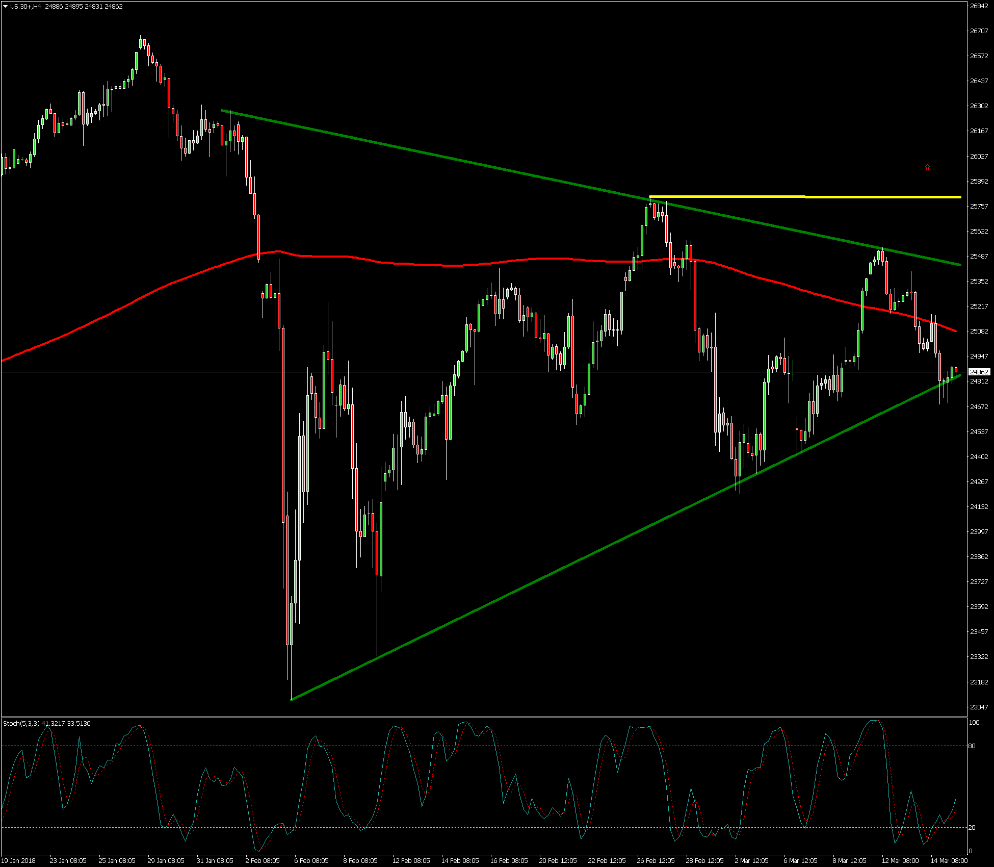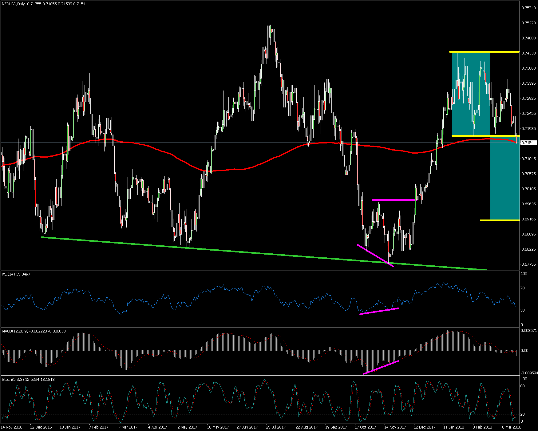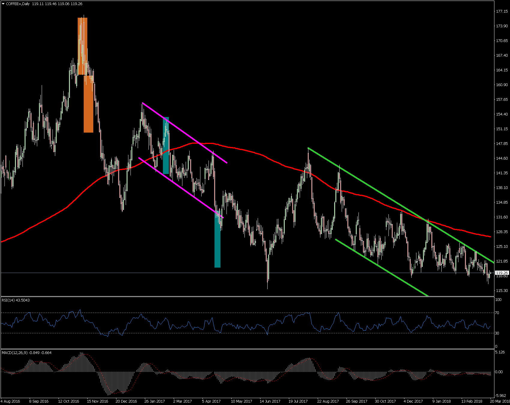 A principios de año 2017 el commodity comenzaba un rebote desde la zona de la parte alta del canal, al romper el canal éste pasa de resistencia a soporte formando un Trow-Back. Luego empezó una tendencia alcista con una sucesión de mínimos y máximos crecientes relevantes.