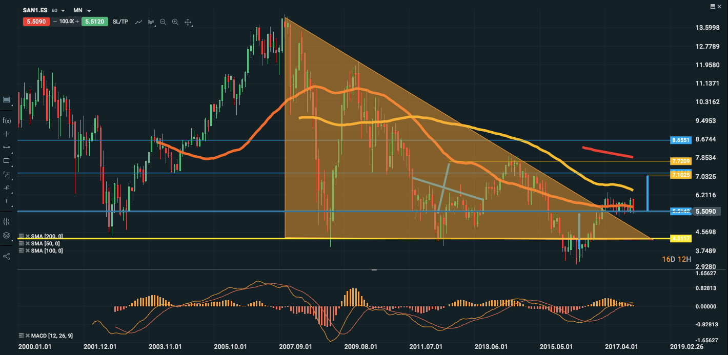 De todos modos, habría que esperar por donde romperá el triángulo porque si por noticias macro perforase el soporte actual, el siguiente valor de Fibonacci está en 2,86€/acción.