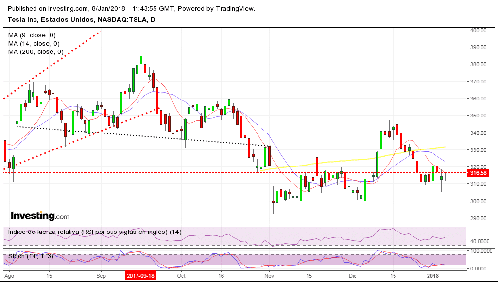La media móvil de 200 sesiones marcada en color roja ha pasado de resistencia a zona de soporte relevante en el futuro. Luego se encuentra en fase ascendente indicando tendencia alcista.
