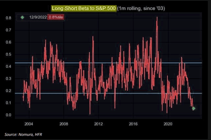 Las Betas de las acciones del S&P 500 (es la métrica de las Opciones responsable del movimiento / variación de los subyacentes) sigue en niveles muy bajos, aunque analistas Quants (Nomura) por lo menos destacan que, en el mini rally de ayer tras el dato de inflación, dichas Betas parecen remontar (observen comparativa en los siguientes gráficos).