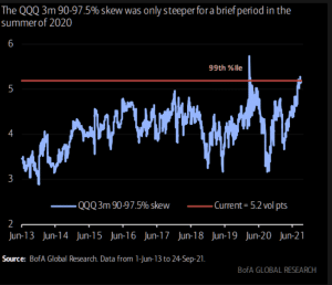 El problema ha sido que en esta ocasión las cuestiones macro de sobra conocidas ( Inflación, tapering, tipos, sobrecompra tech, etc) han empujado el soporte hasta una zona de gamma negativa – MA 100 NO MA50 como el patrón anterior – dónde las Puts ( opciones bajistas) estaban esperando para cobrar las primas en medio de la habitual confusión de final de mes provocada por la rotación de carteras.