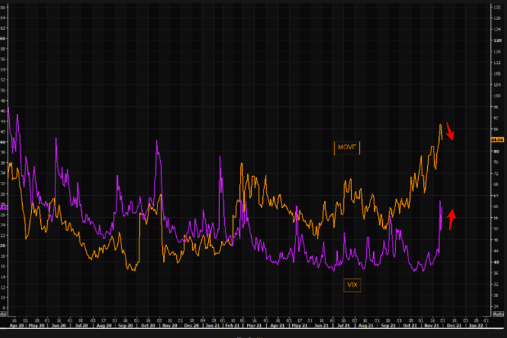 Una vez que ese descuento se produzca veremos, como primer síntoma, una caída de la volatilidad pero, por el momento, sí es cierta una caída leve del MOVE o índice de volatilidad de los Bonos, pero el VIX, sigue alcista.