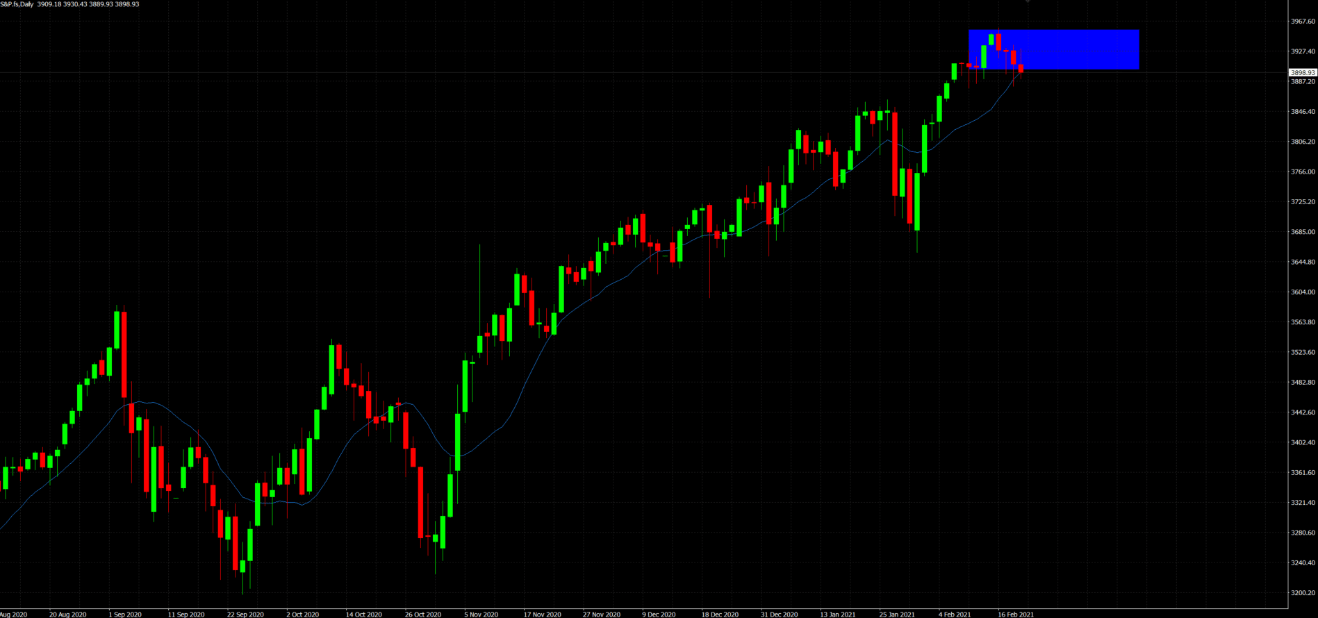 Con el futuro del SP500 terminando en pérdidas en el total de la semana tenemos como referencia el primer nivel de resistencia al corto plazo, entre los 3.900 y los 3.950 puntos.