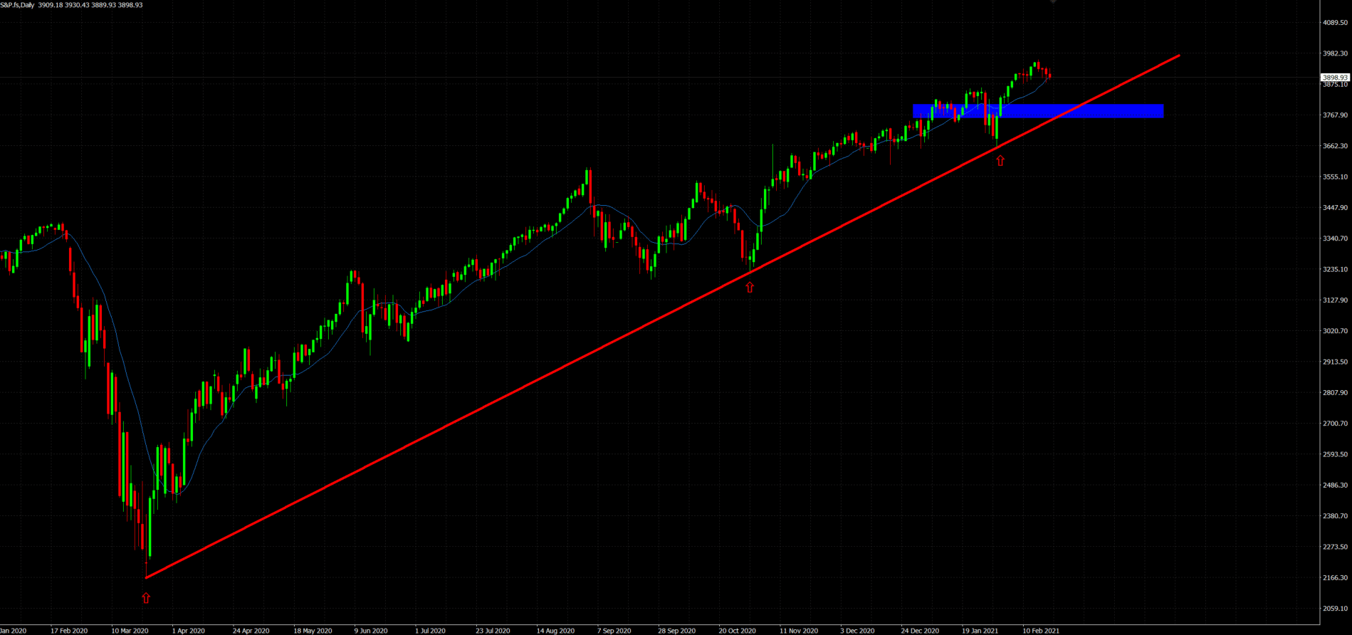 Una caída hasta zonas mencionadas coincidiendo con esta clara trendline que lleva formándose desde marzo de 2020 puede dar señales de equilibro en un SP algo difícil de operar debido a la situación general.