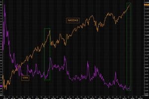 Para los soportes, guiándonos por el canal alcista de referencia en Diario proponemos 15 600 o 14 490 ptos. No obstante contamos con dos factores que podrían castigar más al índice en la corrección; el primero es más fácil de controlar por A. técnico ya que hace referencia al VXN o índice de volatilidad del NASDAQ .