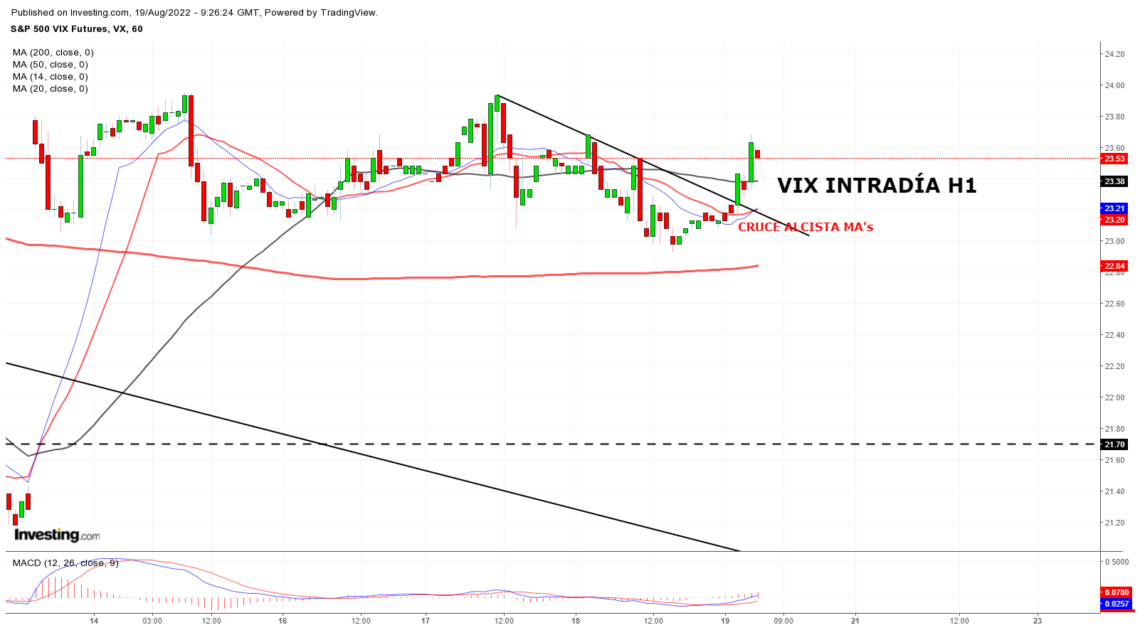 Trading concentrado en Dólar y correlaciones (ver vídeo anterior). A medida que entramos en Pre Market el S&P 500 cae a soporte y el VIX repunta alcista en el intradía H1.