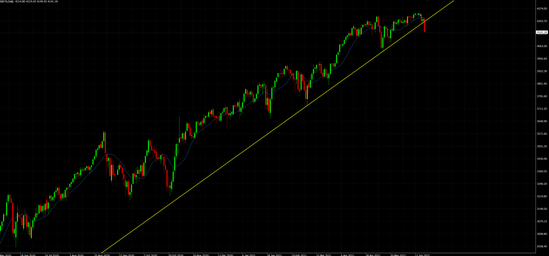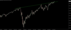 Empezando por el SP500 vemos como la vela diaria del pasado viernes acabó rompiendo por debajo la gran tendencia que se ha ido formando desde hace más de un año.
