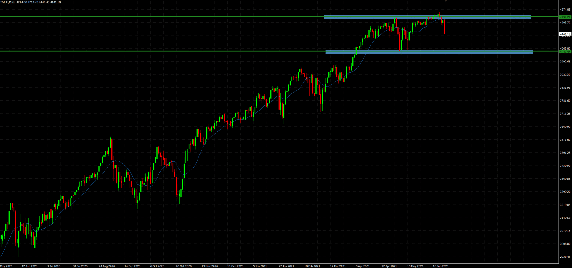 Por otro lado, en el mismo SP500 tenemos la zona de 4.050 puntos aproximadamente como zona de soporte clave (Zona que si pasa activaría el doble suelo anteriormente mencionado).
